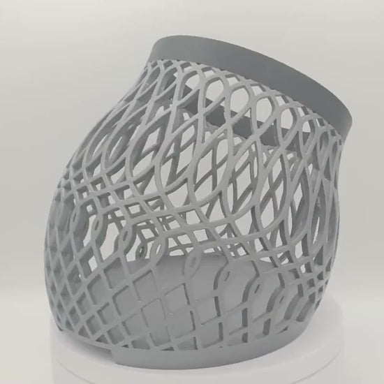 The curved body gently presents the plant outward, turning orchids into a wall feature instead of something that competes for counter and sill space. Open lattice sides allow roots to breathe naturally, while the solid top ring keeps the look clean and intentional.